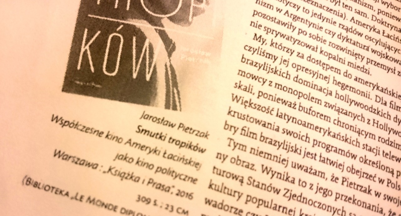 Rok 2016 dobiegł końca. Był to rok, w którym wydałem moją pierwszą książkę w całości moją i na papierze, Smutki tropików. Współczesne kino Ameryki Łacińskiej jako kino polityczne. Dlatego postanowiłem z tej okazji przygotować tego posta, w którym będe zbierał recenzje książki w prasie i w sieci. W zamyśle post ma być edytowany, gdy/jeśli ukażą się kolejne.